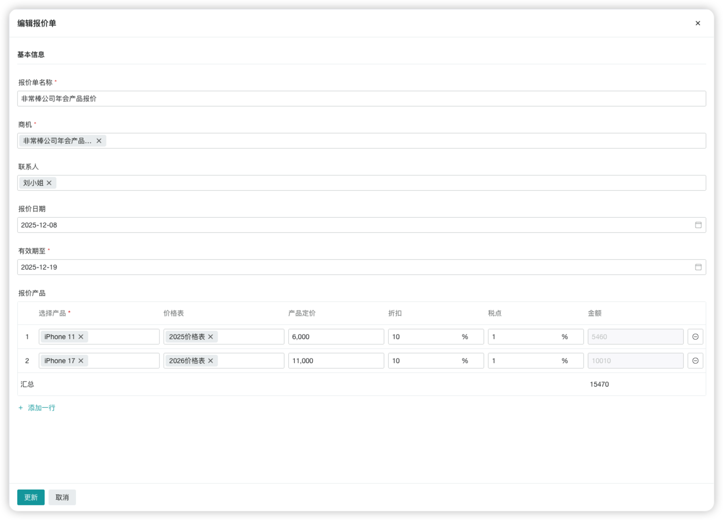 ▲图5 Cordys CRM报价单编辑界面