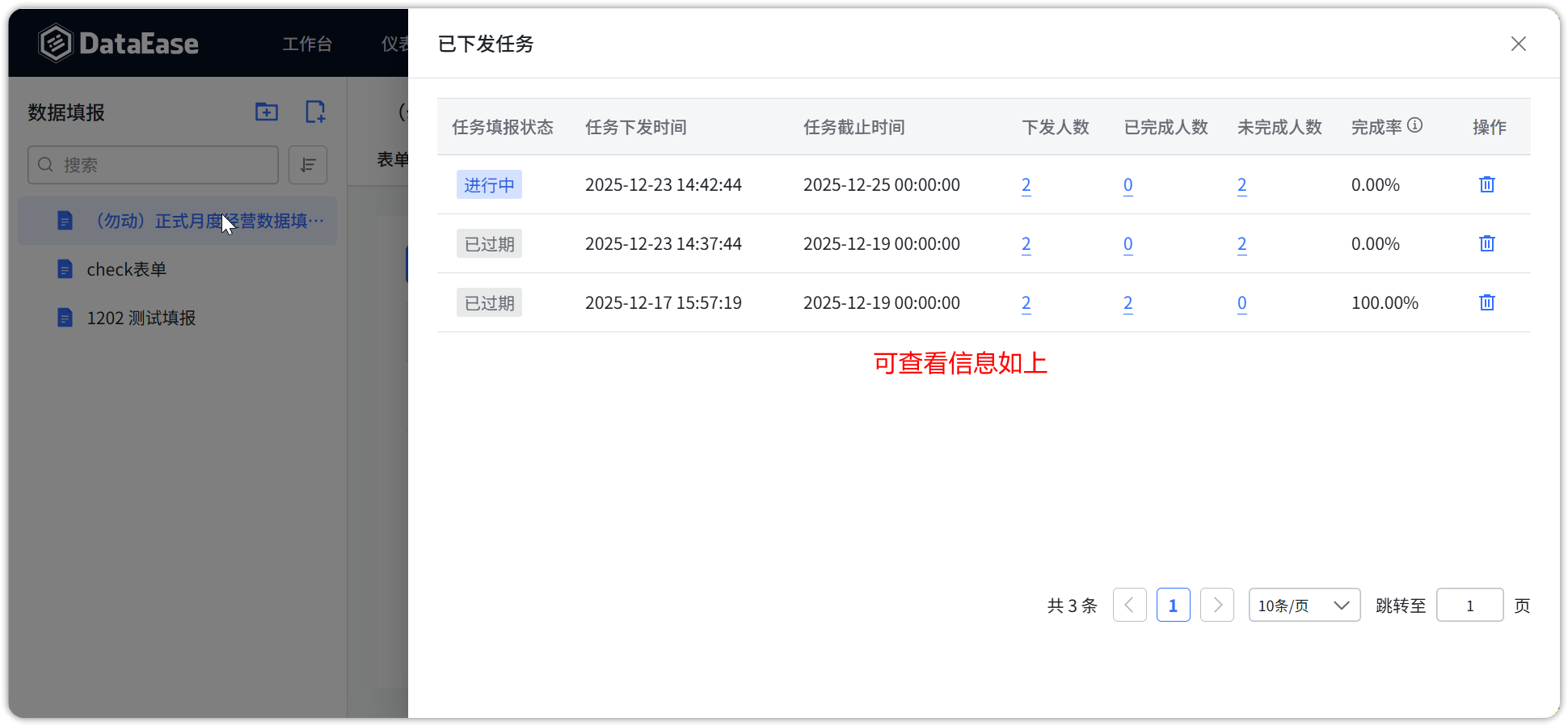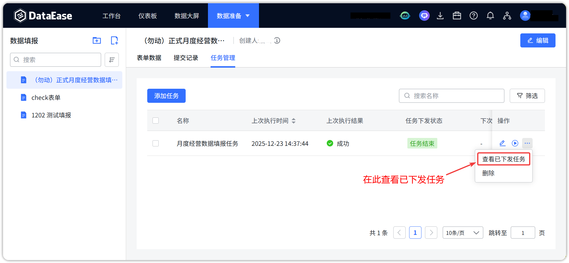 ⑤ 任务创建人可以在任务菜单中查看已经下发的任务。