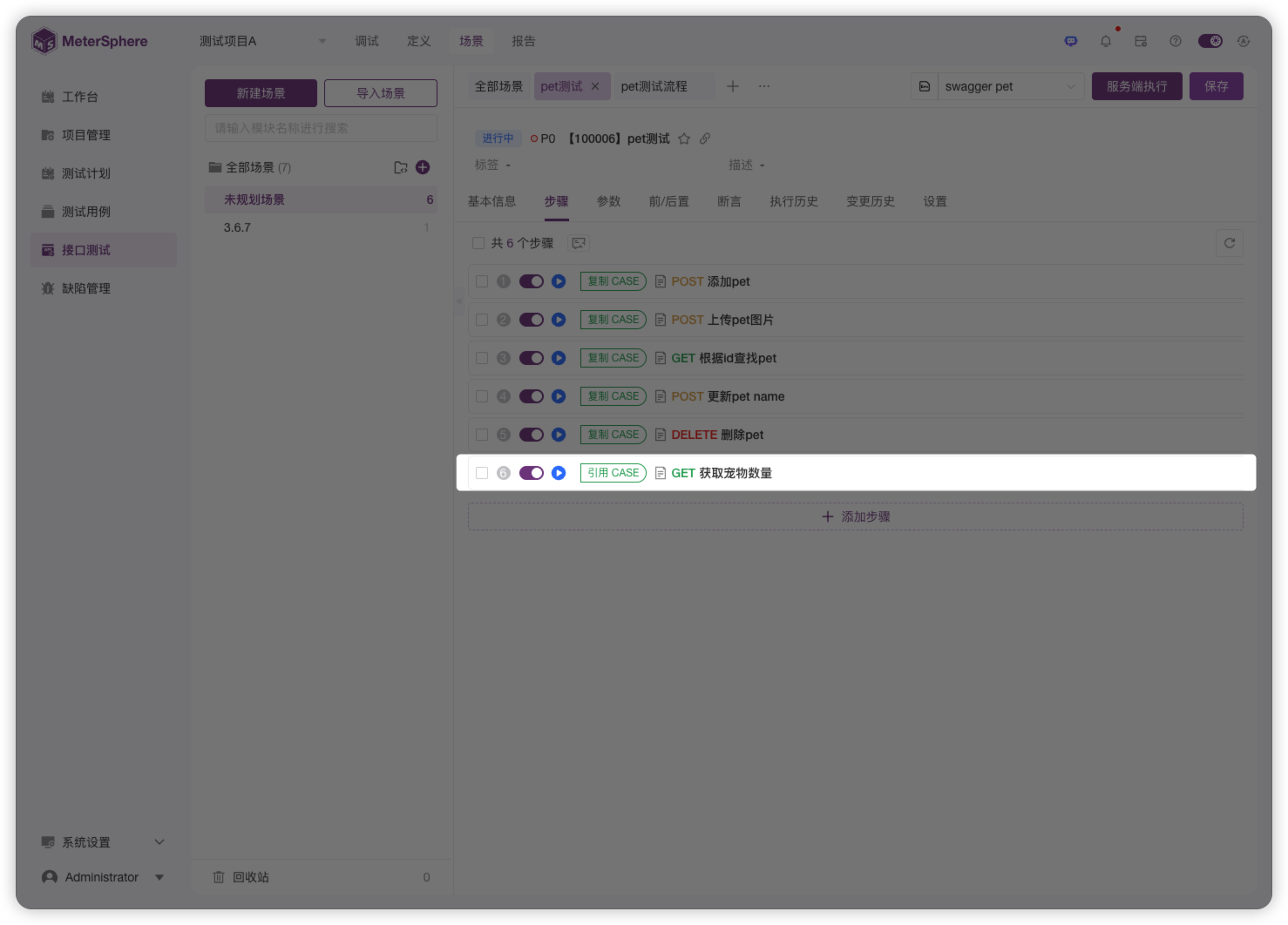在MeterSphere v3.6.7 LTS版本中,在对接口场景中的自定义请求步骤进行“另存为新接口”的操作时,用户可以一键将当前步骤变更为“引用用例”或“复制用例”步骤。这一功能可以助力测试团队提高接口场景的编写效率,并且可以降低测试用例的维护成本。