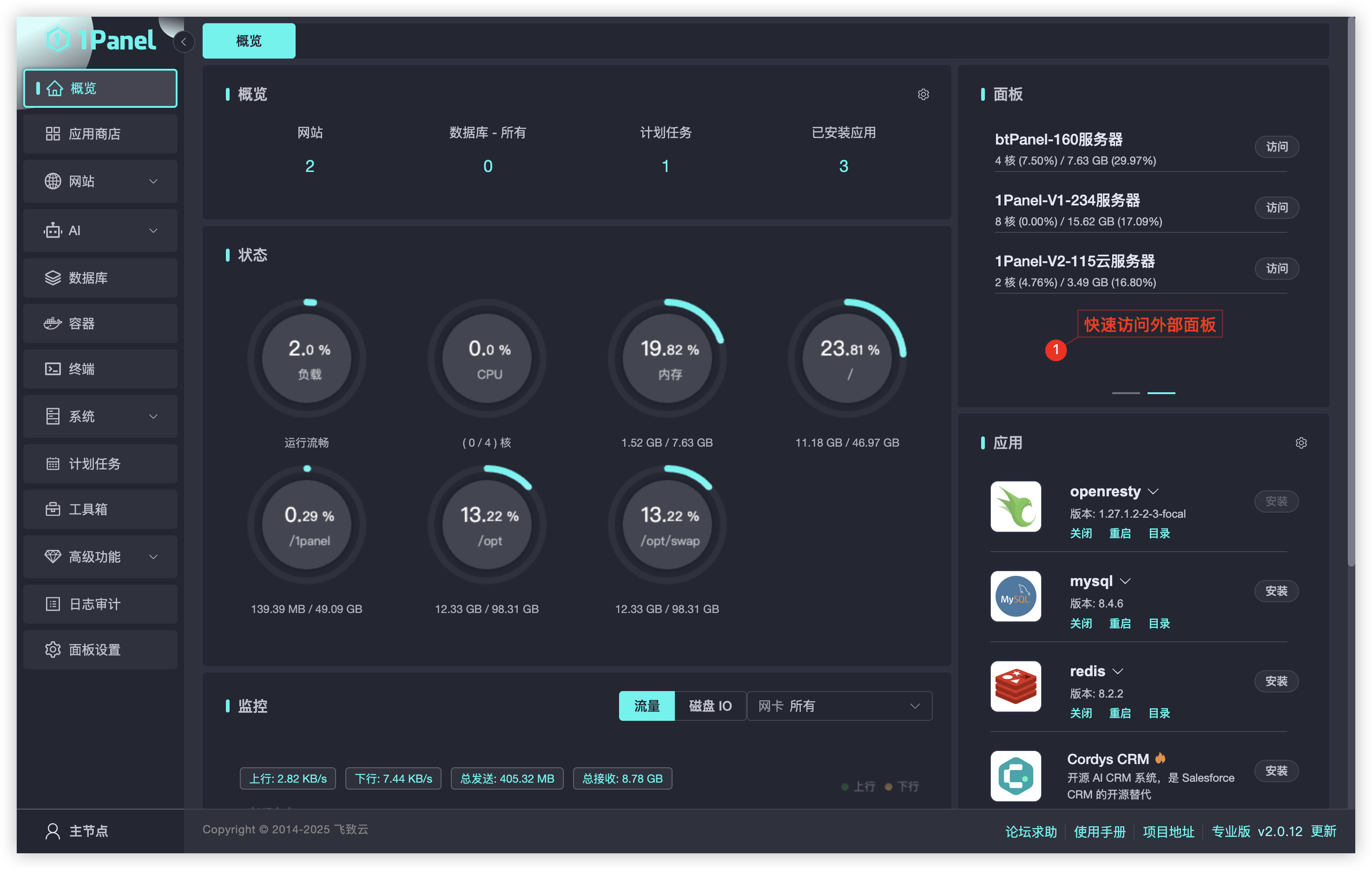 2025年10月27日,现代化、开源的Linux服务器运维管理面板1Panel正式发布v2.0.12版本。
