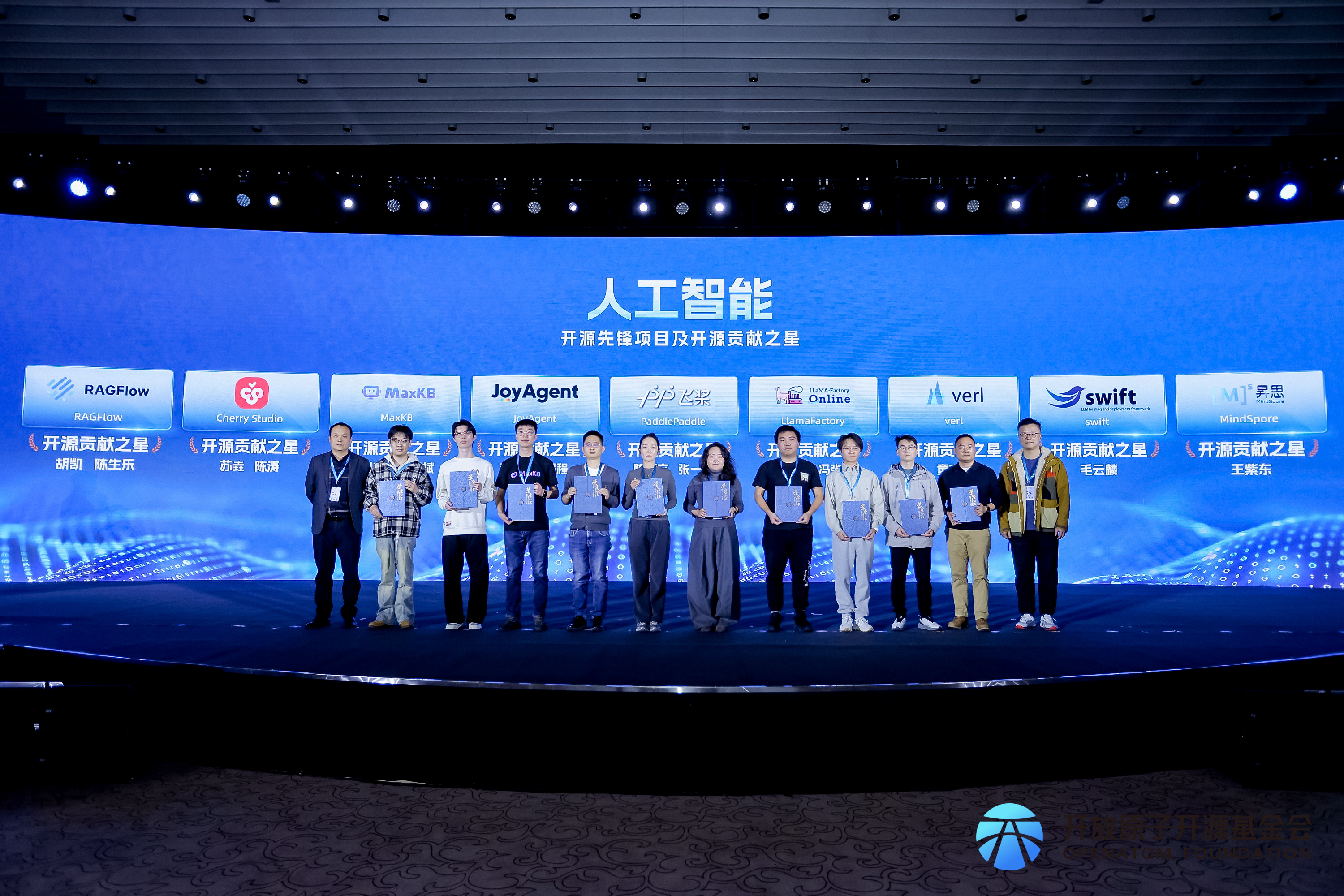 2025年11月21日,由开放原子开源基金会主办的“2025年开放原子开发者大会”在京举办。在本次会议上,开放原子开源基金会向操作系统、数据库、人工智能三大技术领域开源先锋项目中作出卓越贡献的开发者致谢。飞致云旗下的MaxKB项目成功入选“人工智能开源先锋项目”。